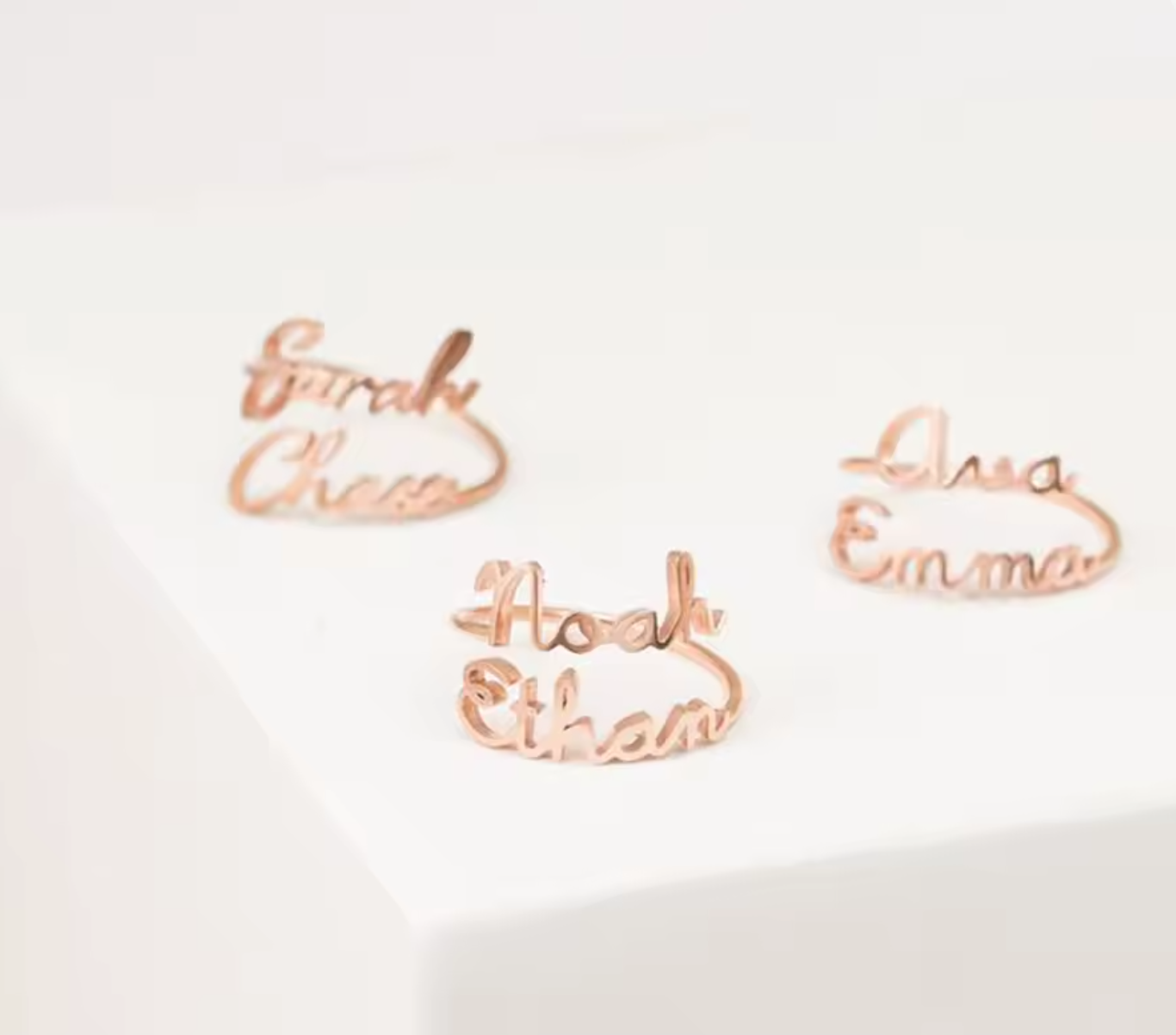 Deze naamringen zijn meer dan sieraden: ze vertellen jouw verhaal. Personaliseer de ring met 1, 2 of 3 namen of betekenisvolle woorden die voor jou belangrijk zijn. Zo draag je je geliefden, herinneringen of levensmotto altijd dicht bij je.