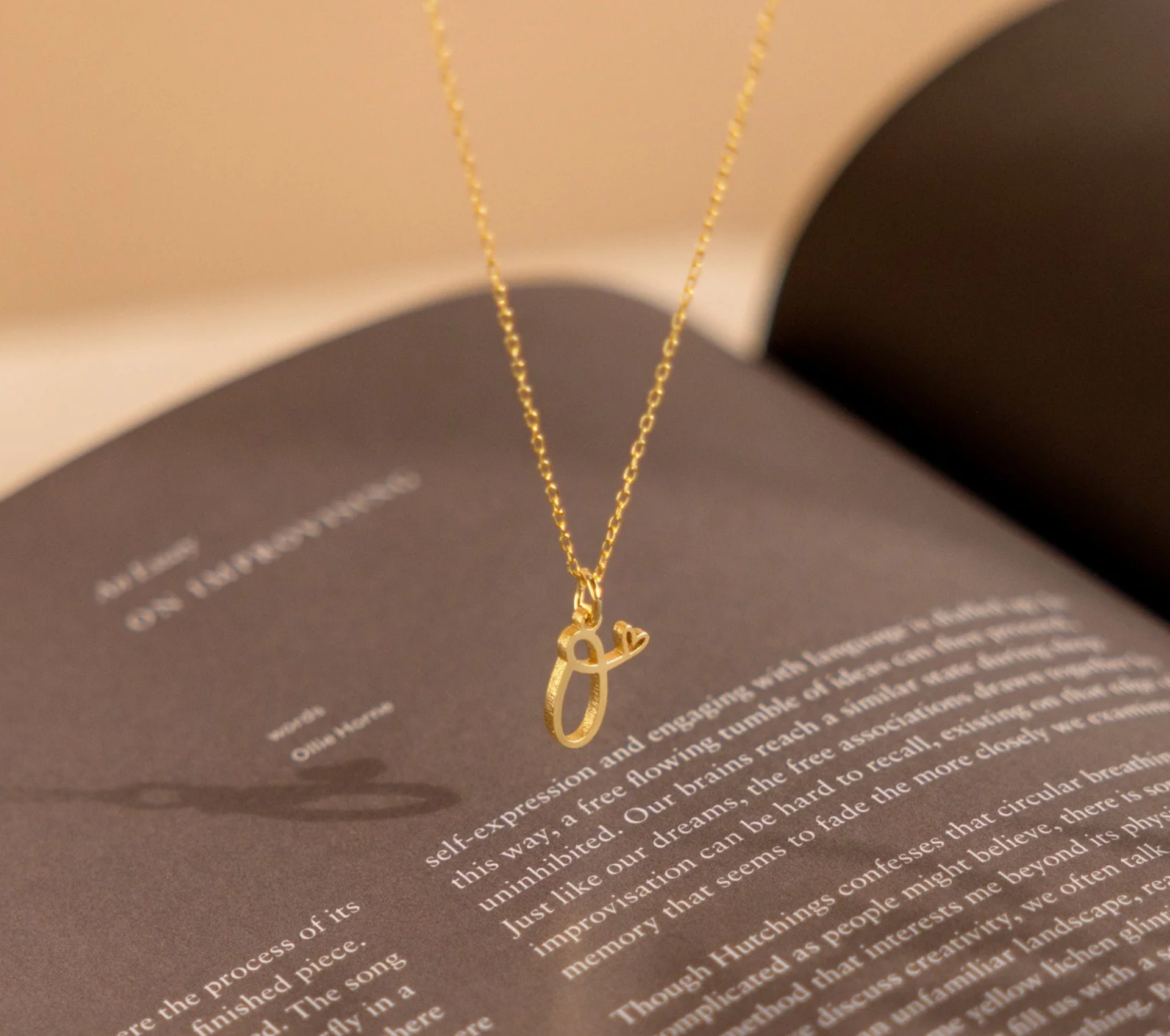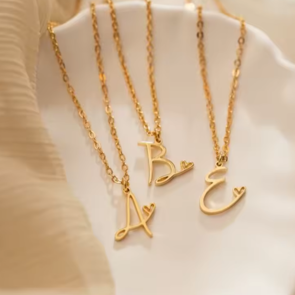 Een letterketting met een subtiel hartje verwerkt in het ontwerp.